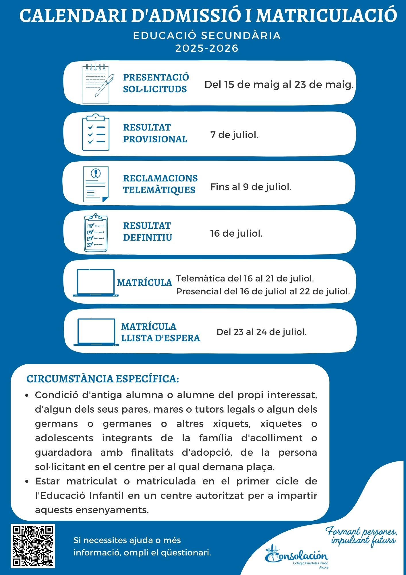 Ya están disponibles los calendarios de admisión para el curso 2025-2026 para las enseñanzas de educación infantil, educación primaria, educación secundaria obligatoria y bachillerato en le Comunidad Valenciana.